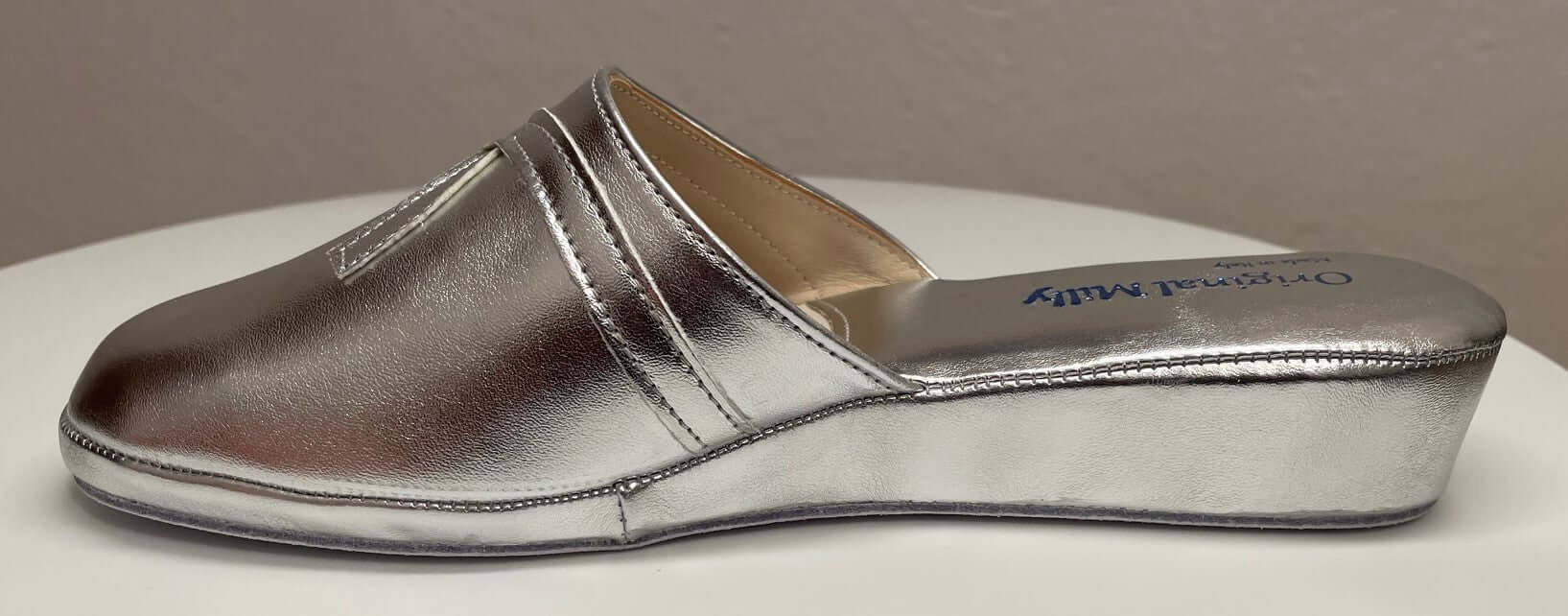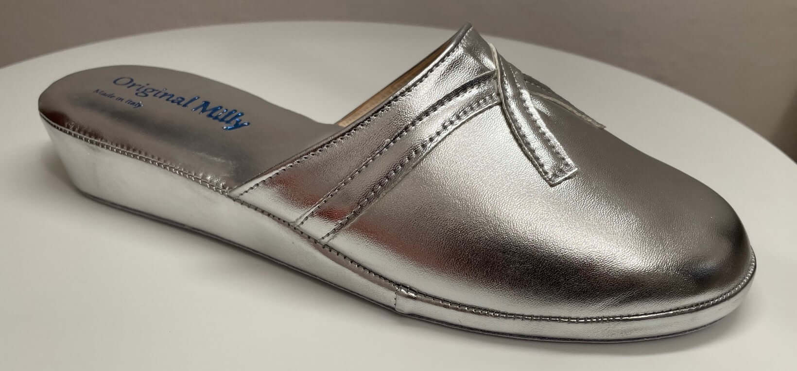 Scopri la comodità con l'originale ciabatta Milly 2200 Argento. Realizzata a mano con ecopelle di alta qualità, questa ciabatta è l'ideale per un comfort duraturo. Il suo design elegante e l'eccezionale resistenza la rendono perfetta per il relax a casa o per un delizioso soggiorno in hotel.